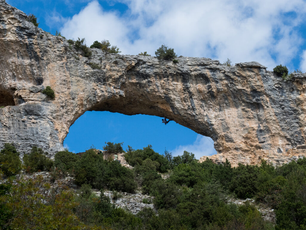 ライン取りはアーチ底面を、左に行ったり右に行ったり。両側のカンテを使うことで、より立体的なクライミングが楽しめる。これもアーチが太くて幅がある、El Delfinにはない要素だ。