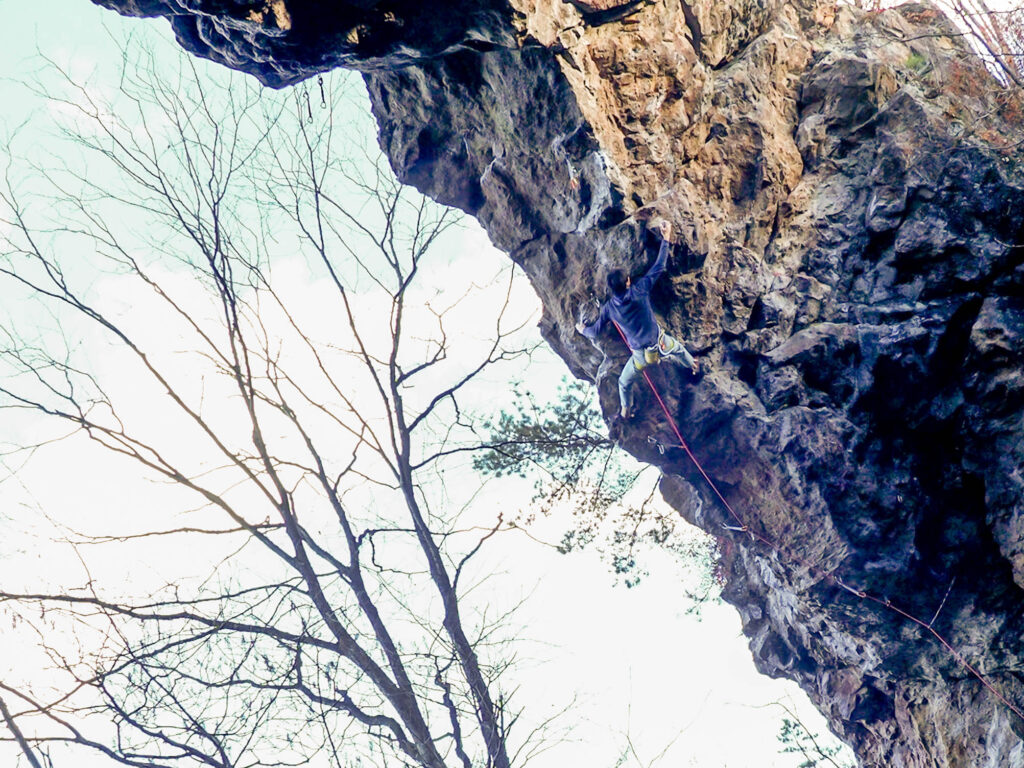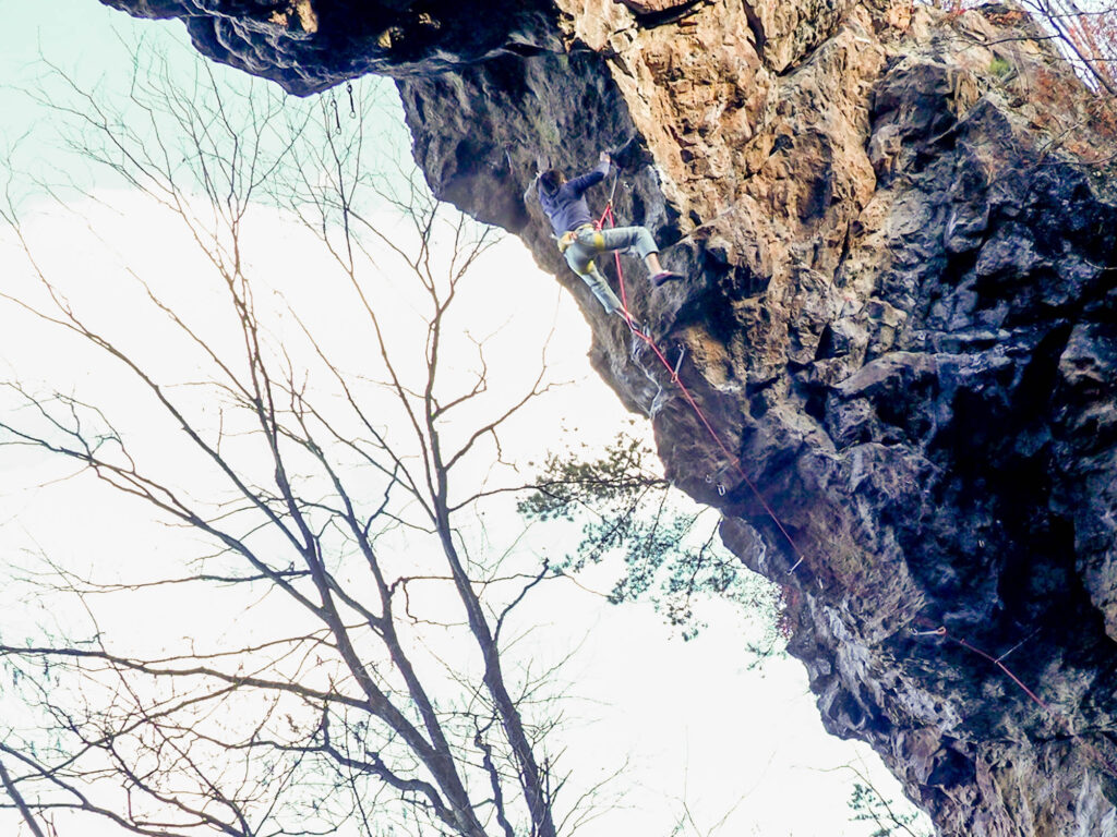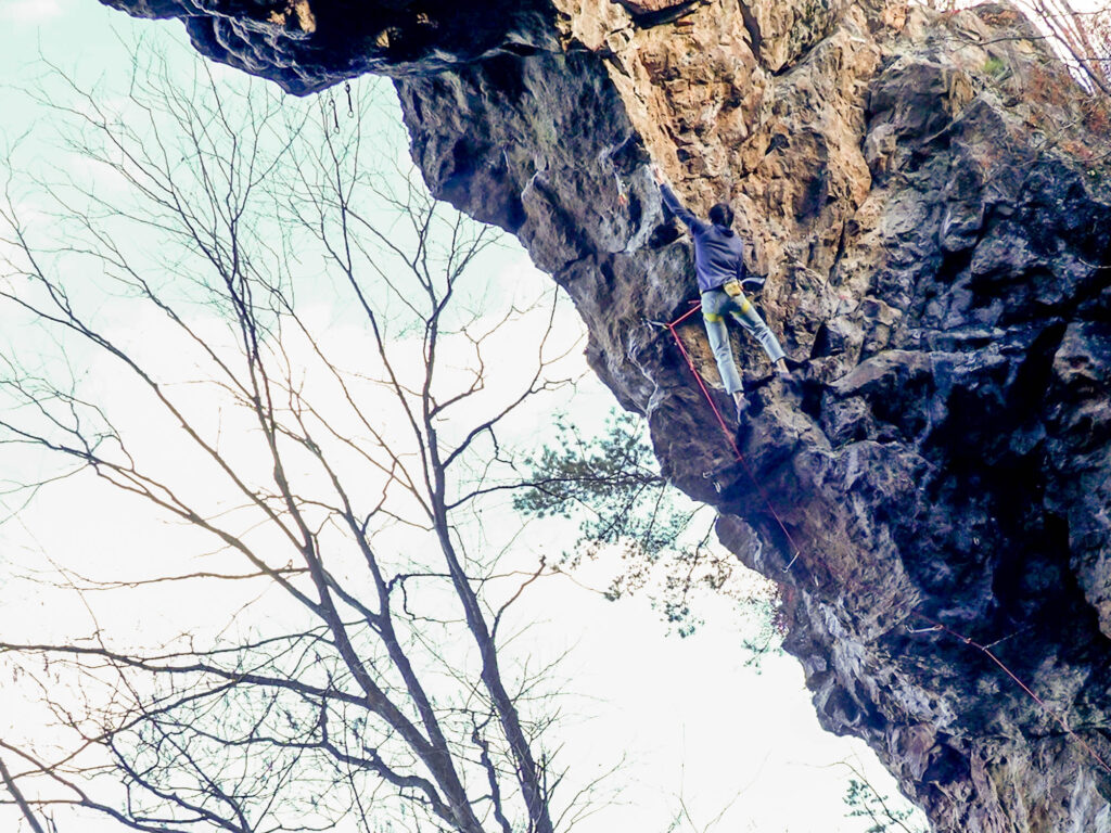 ルート名の通り、傾斜は強いものの、ホールドは基本的にガバ。しかし、たまにガバじゃないやつが混じっていて、そこが難しい。天然記念物から分岐して割とすぐの5P目?付近で、左にトラバースする部分が核心だろうか。