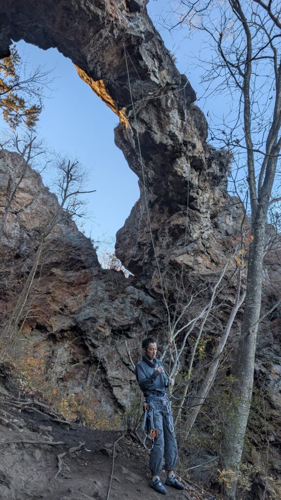 ジ・アーチの看板ルート。国内では超貴重なアーチクライミングだ。