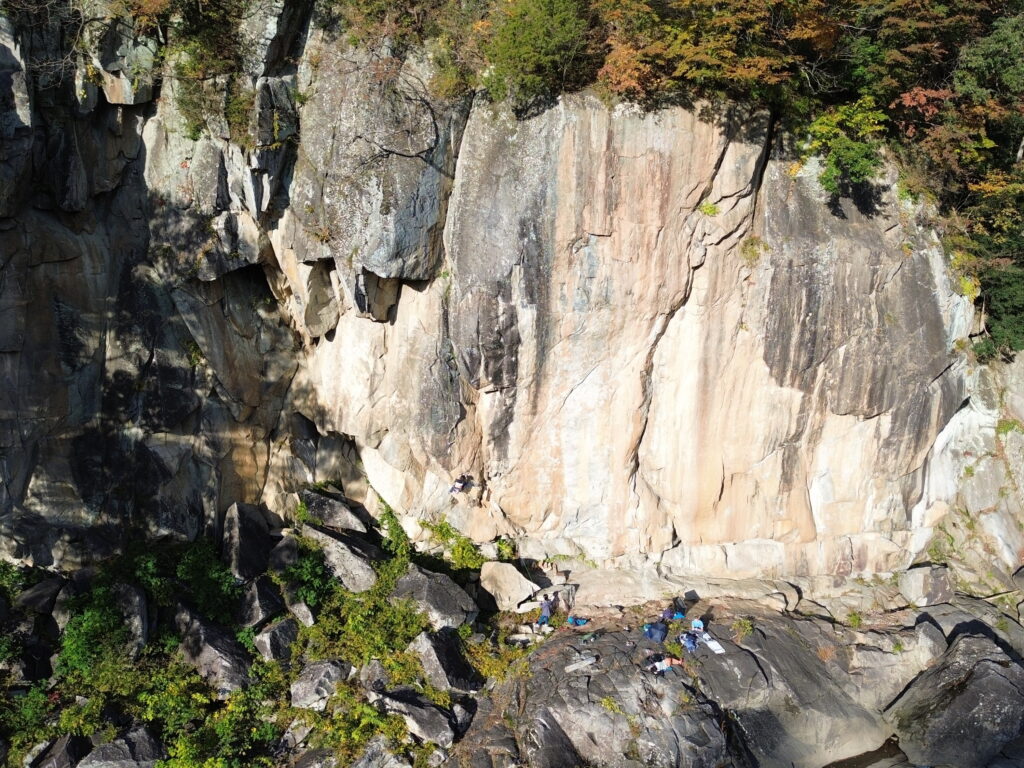 今回行ったのは11月の頭で、小川山・瑞牆ではダウンを着ていても寒い時期。しかし、大日岩は半袖でビレイしていても暑かった。