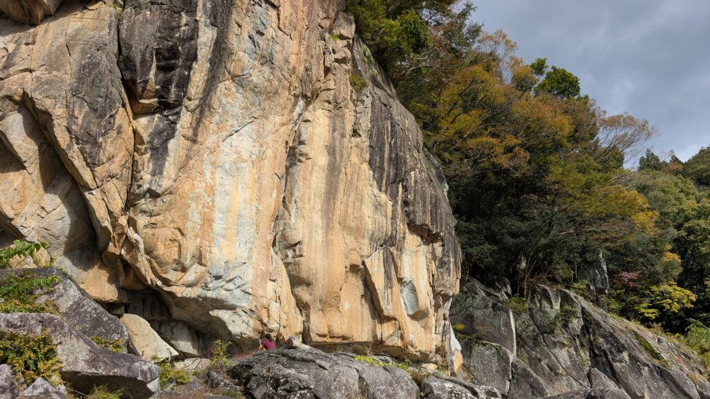 長く登られている岩場ということもあり、岩は安定している印象。しかし、明らかに上から落ちてきたと思われる大岩も転がっているので、一応休憩場所は注意した方が良いかもしれない。