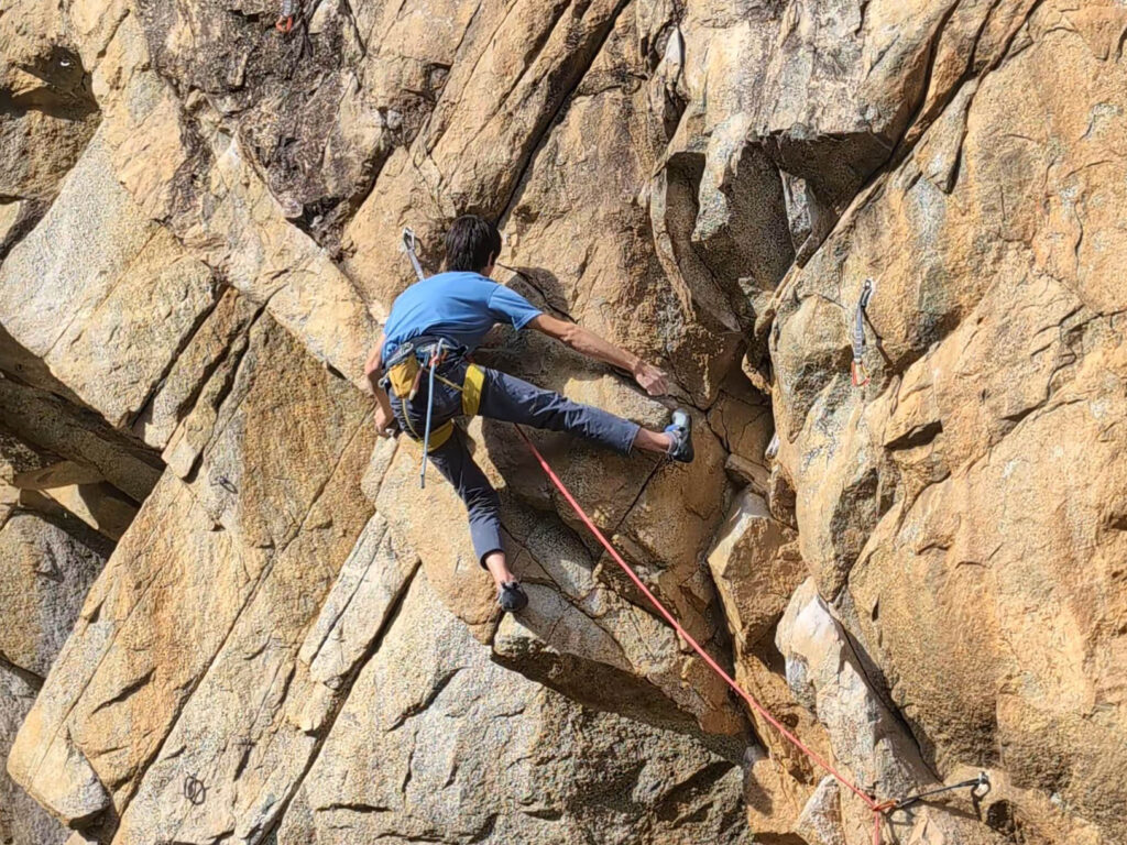 2回目で登れた時は、ほとんどパンプしなかったが、ムーヴがしっかり作れないと登れないルートだと思う。グレードは辛めに感じたけど、小川山のレギュラー(5.10c)とかも結構難しいし、花崗岩ってこんなもの?