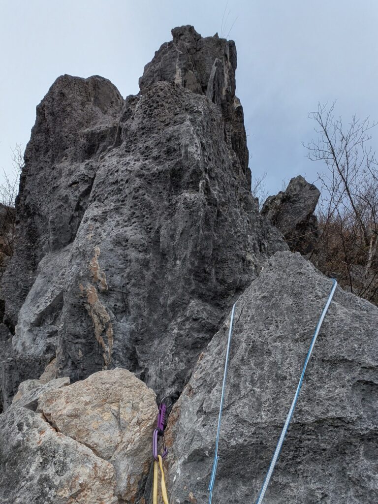 ちょうど1年ほど前にマルチを覚えて、夏の間に何本か登ったのだが、秋から春にかけてはシングルピッチのみ。念のため、ロープワークなどの復習をしておこうと思い、ツアーまで3週間のこのタイミングで計画。