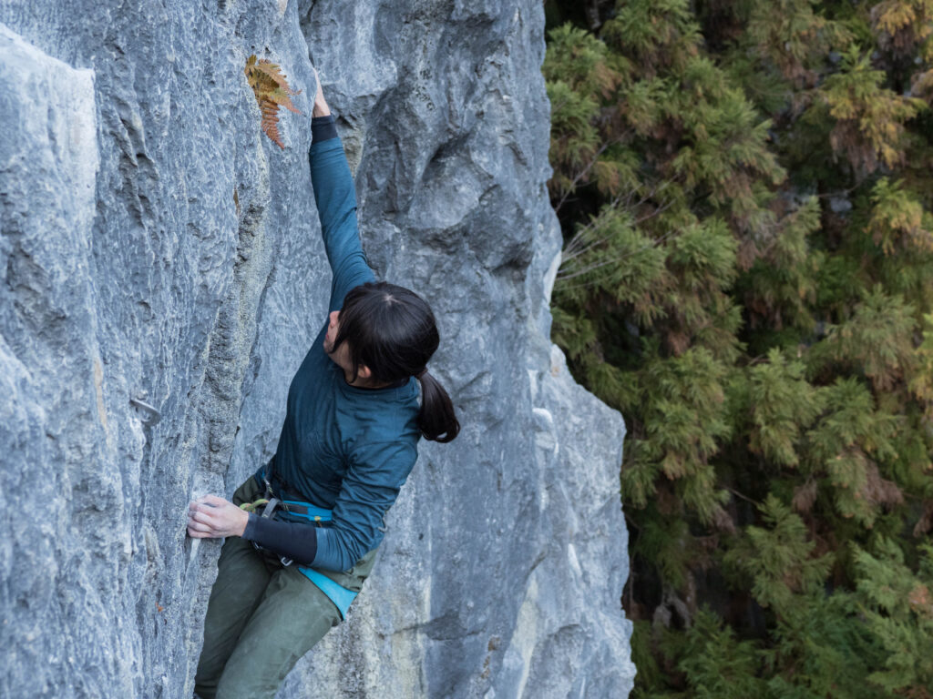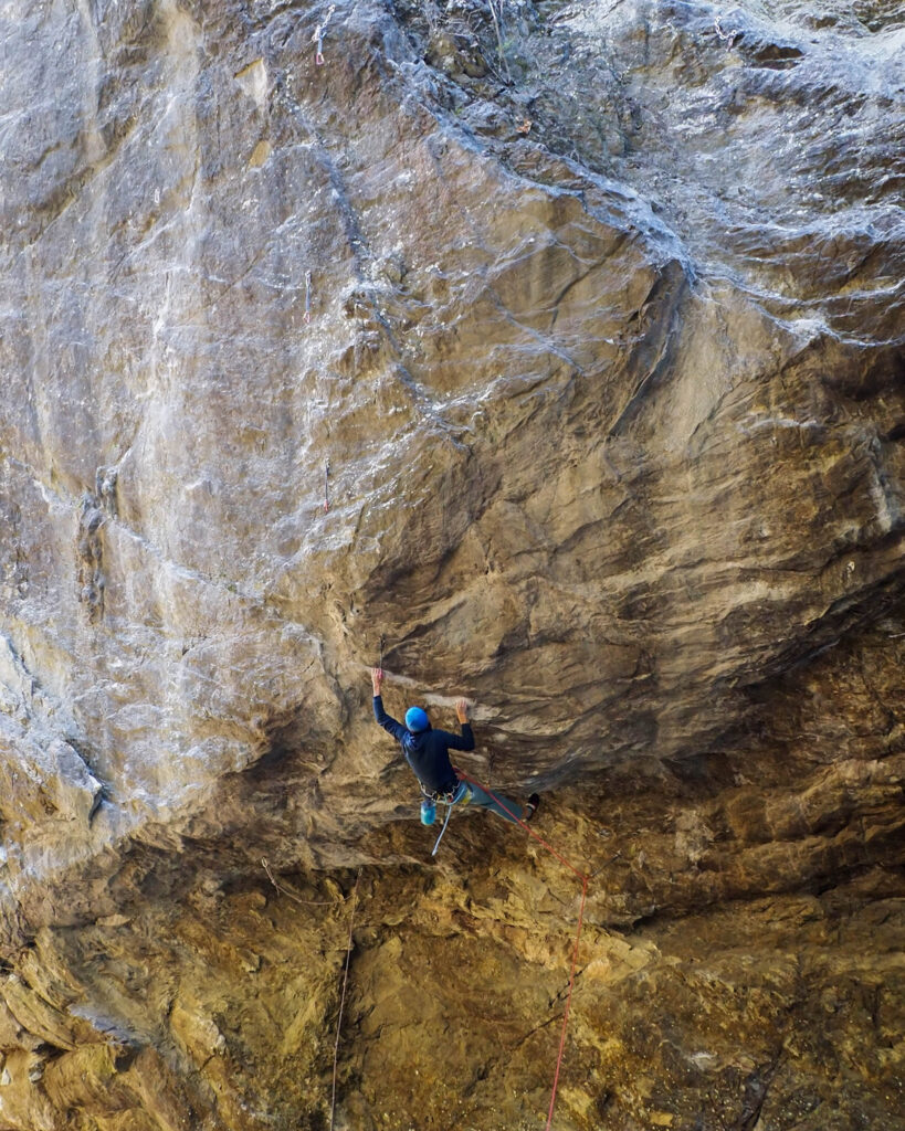 保持力も上がっているのだろう。以前までは、小核心といえる部分が2箇所くらいあったと思うが、今回は特に難しさを感じず。上からの撮影のため、ダウンを着てカメラを背負って登ったが、それでもスイスイ登れた(もちろんパンプはゼロではないが)。