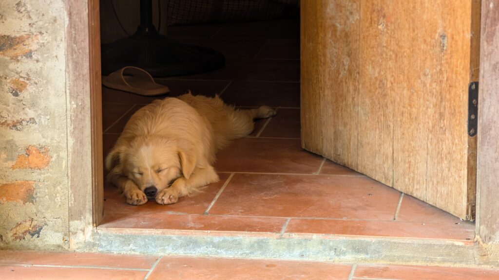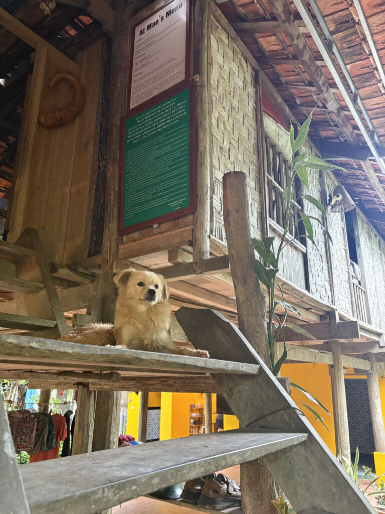 ホームステイにバイクを止め、徒歩1~2分で岩場へ。ホームステイで飼っていると思われる犬が、岩場までついてきたが、すぐに飽きて帰って行った。笑