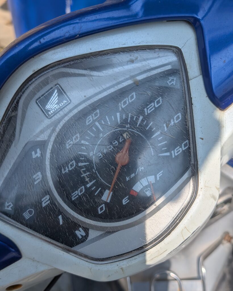 スピードメーターも動いてないので、実はガソリンは十分入っているにも関わらず、燃料計が壊れている可能性もある。もう無視して岩場に向かおうかとも思ったが、行った先でガス欠になり、この暑いなか押して帰ることになったら目も当てられない。