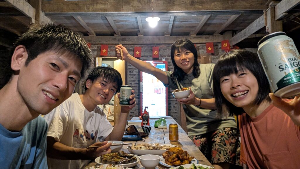 この日は土曜日。VietClimbのジェンを含め、欧州出身・ハノイ在住の開拓チーム3人も泊まりに来ていた。