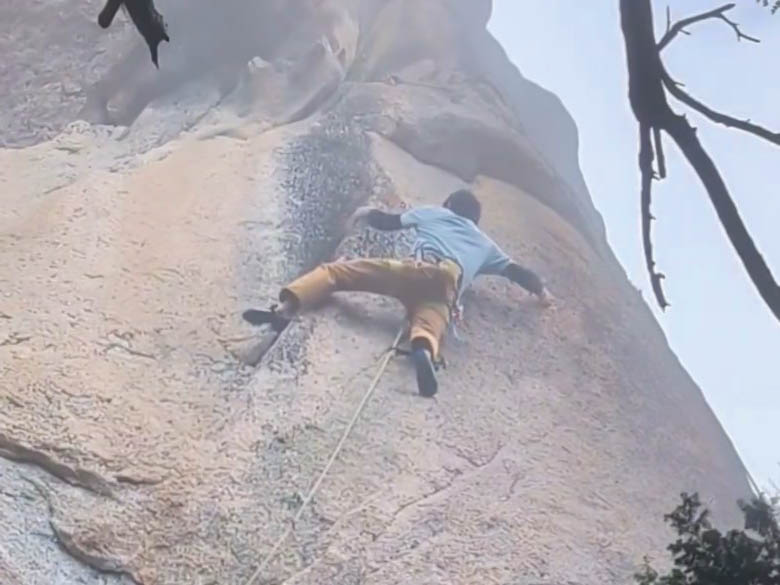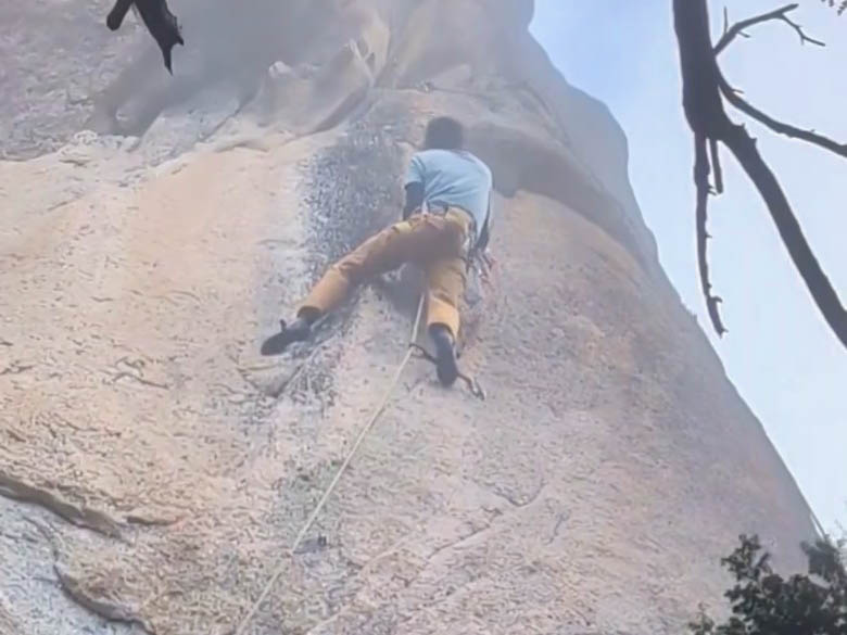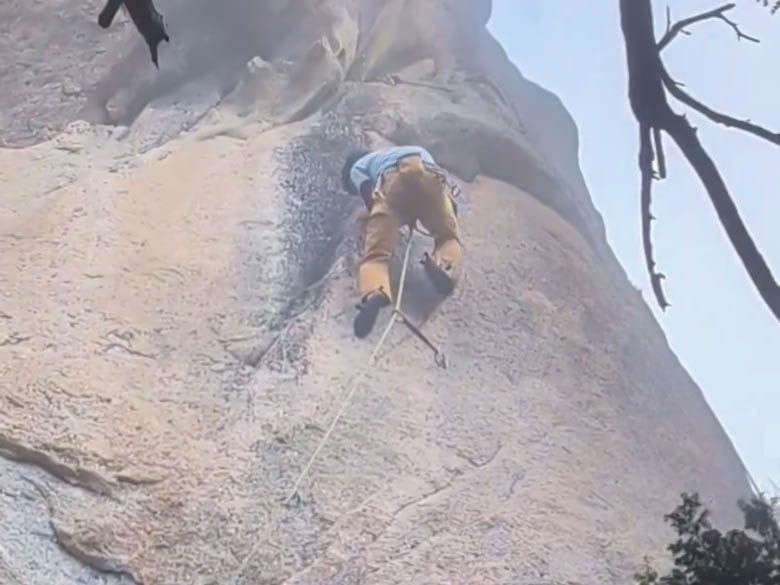 右手で縦クラック(縦カチ)を取る一手だが、そもそもこのムーヴで2回に1回くらい落ちる(もちろんバラシで)。