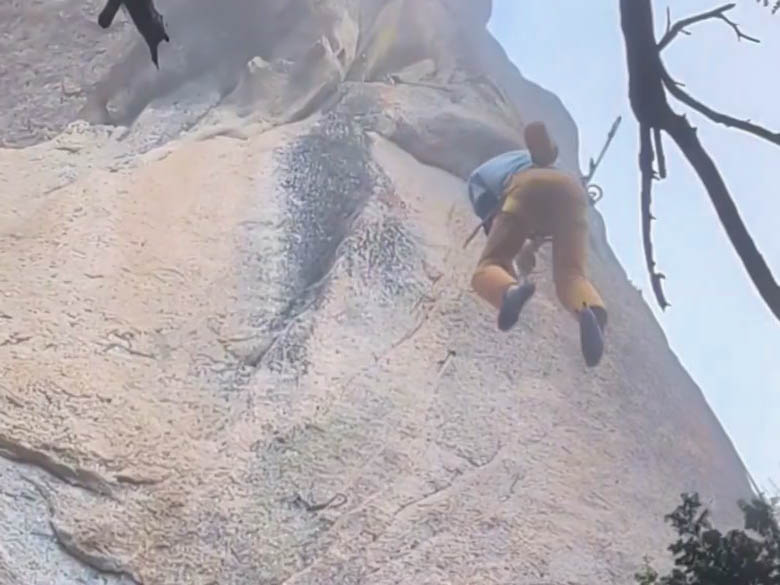 ロープと足の位置関係に気を付ければクリーンフォールではあるのだが、毎回ボルトが目の前の位置まで来て落ちるので、恐怖心も動きに影響しているのかもしれない。この日はここで何度も同じ落ち方をしたが、なかなか慣れない。ゴボウでの登り返しも大変だ。