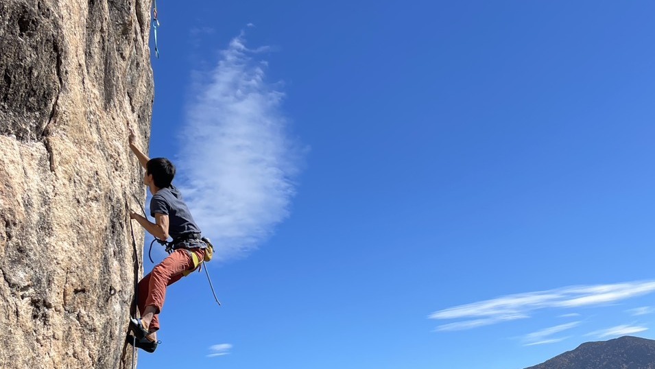 快晴で壁にはすでに陽がガン当たりだが、まだホールドは適度に冷たく、フリクション抜群だ。