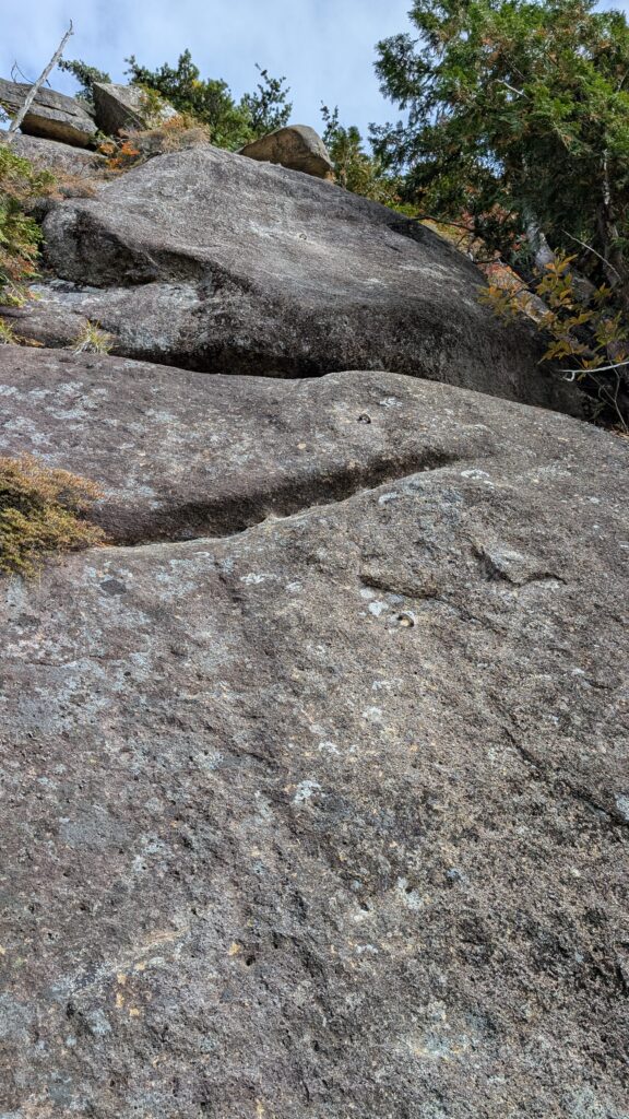 大きな岩が積み重なったような感じで、岩と岩の間はガバ棚になっていて、悪いところを越えると一息つける。