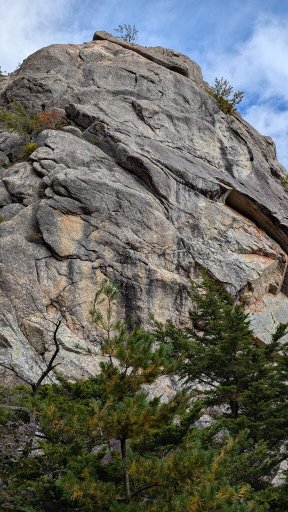 岩は立体的で、上部はスラブが多そうだが、ハング越えがあったりして楽しそう。恐らく西面で、午後は陽が当たると思う。